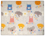 Ena stran z živalmi in angleškimi poimenovanji za spodbudo zgodnjega učenja, druga z geometrijskimi vzorci se poda v vsak interier.