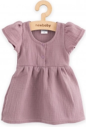 Poletna muslinasta oblekica New Baby v sivkini barvi je idealna za tople dni. Nežno tkan, zračen muslin zagotavlja kroženje zraka in zmanjšuje tveganje pregrevanja, zato je dojenček udobno nameščen ves dan. A-kroj z nabranim krilcem je ne le ljubek, temveč tudi udoben za svobodno gibanje.