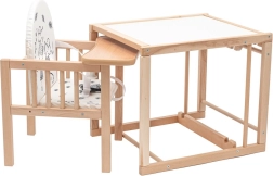 Enostavna pretvorba iz visokega stolčka za hranjenje v samostojno mizico in stolček za igro, risanje in samostojno prehranjevanje.