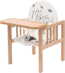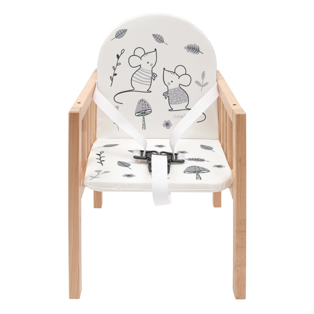 Leseni stolček za hranjenje NEW BABY Jerry združuje varnost, udobje in dolgo življenjsko dobo. Izdelan je iz kakovostnega bukovega lesa, ki zagotavlja visoko stabilnost in odpornost pri vsakodnevni uporabi. Mehko oblazinjenje z veselimi motivi in pladenj, ki ga je mogoče enostavno očistiti, olajšata vzdrževanje in polepšata vsak obrok.