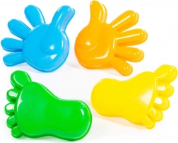 Odkrijte barvit komplet modelčkov za pesek za otroke – roke in noge. Štirje čvrsti plastični kosi ustvarjajo izrazite odtise prstov na rokah in nogah, spodbujajo otroško ustvarjalnost in fino motoriko. Modelčki so lahki, udobni za držanje in zaradi gladkih robov prijazni do otroških rok.