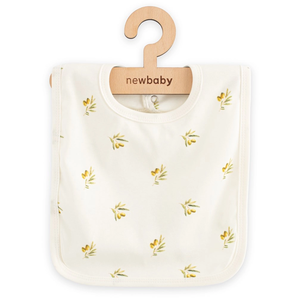 Stilska otroška slinavka New Baby Olive je izdelana iz 100 % organskega bombaža, ki je izjemno mehak, zračen in prijeten na dotik. Zaradi praktičnosti in dizajna s potiskom oliv je odlična za vsakodnevno hranjenje in prve gosto hrane.