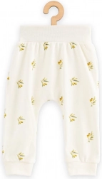 Te otroške hlače so izdelane iz 100% organskega (bio) bombaža, ki je izjemno prijeten na dotik in zračen. Celoplošni potisk oliv doda sodoben videz, medtem ko širši elastični patenti v pasu in na hlačnicah držijo hlače udobno na mestu brez tiščanja.