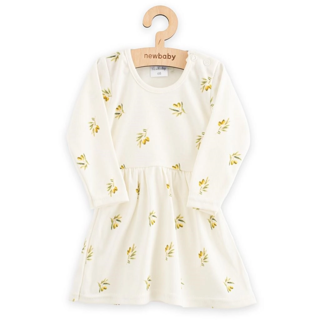 Stajliš in udobna dojenčarska oblekica New Baby Olive je idealna za vsakodnevno nošenje in slavnostne trenutke. Zahvaljujoč mehkem organskem (bio) bombažu je obleka prijetna na koži, odlično diha in ne draži. Nežno nabrano krilce ter igriv potisk oliv dodajata modelu nežen videz.