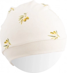 Stilska in mehka otroška kapa New Baby Olive je izdelana iz 100% organskega bombaža, ki je izjemno prijeten na otip, dobro diha in je idealen za vsakodnevno nošenje. Tisk z olivami doda igriv videz, medtem ko širši rob zagotavlja udobje brez neprijetnega pritiska na glavico.