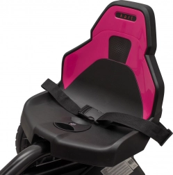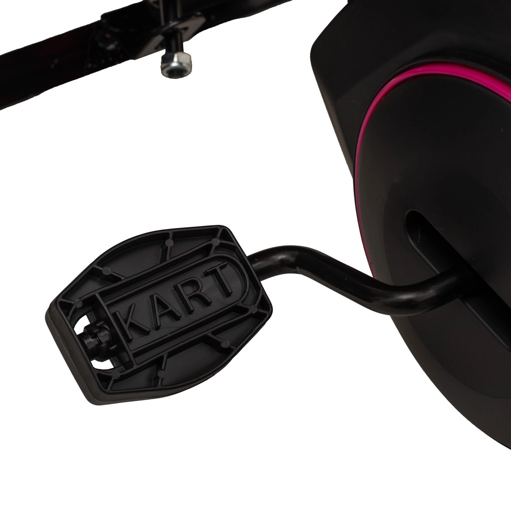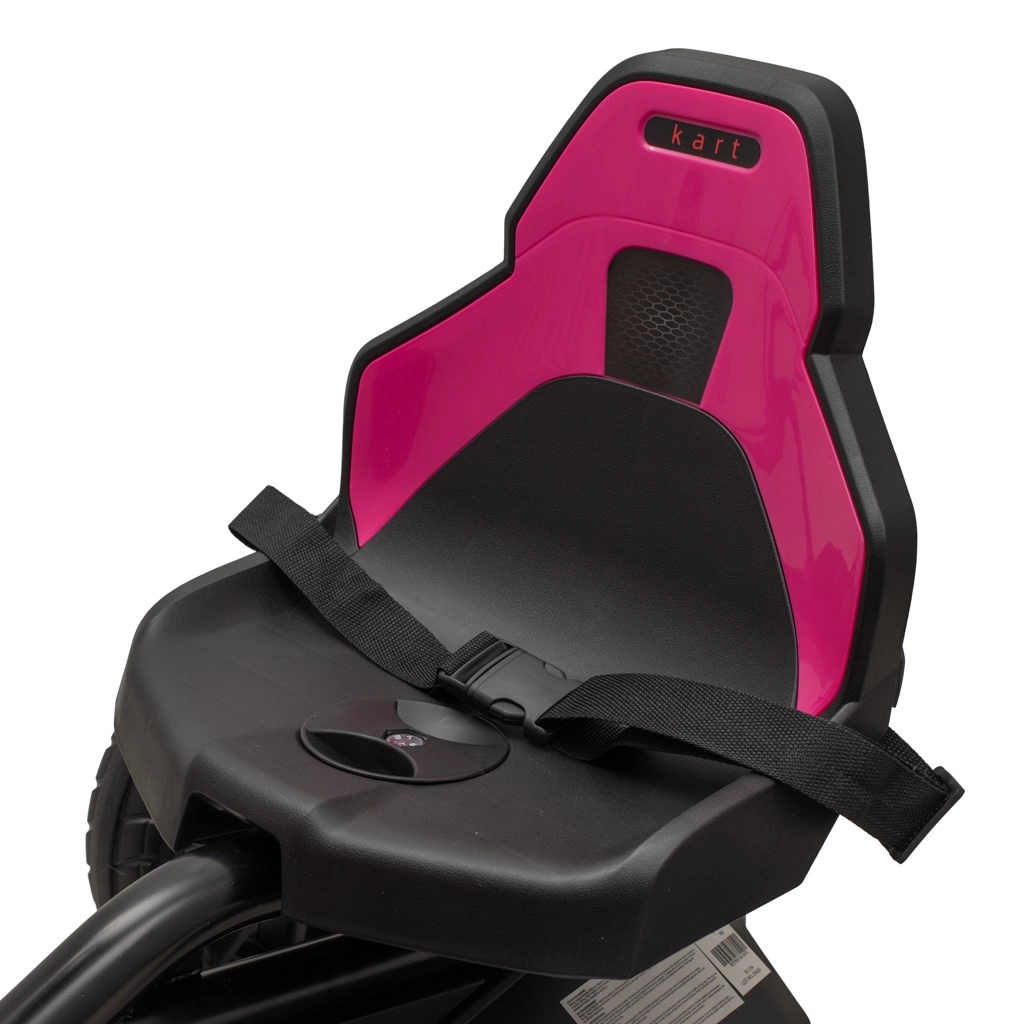 Lahek, a trpežen kovinski okvir in plastični pokrovi v privlačnem slogu so enostavni za vzdrževanje. Nastavljiv sedež raste z otrokom, popolnoma zaprta veriga pa ščiti majhne prste. Športni volan prinaša realističen vozniški občutek in spodbuja razvoj motorike ter koordinacije.