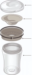 Preprosta zasnova iz 3 delov se zlahka razstavi in očisti, materiali brez BPA pa so varni za otroke. Skodelica je združljiva z linijo NUK Easy Learning, zato jo lahko preprosto prilagodite potrebam vašega otroka.