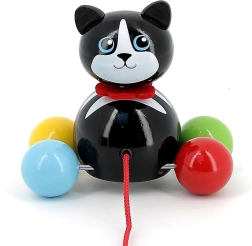 Vlečna mucka Minou je odličen spremljevalec za prve sprehode po stanovanju. Otroci si bodo zaradi barvnih krogličnih koles in rdeče vrvice igračo hitro vzljubili ter naravno razvijali grobo motoriko, stabilnost in koordinacijo oko–roka. Lahka in trpežna konstrukcija iz lakiranega masivnega lesa je prijetna na dotik in enostavna za čiščenje.