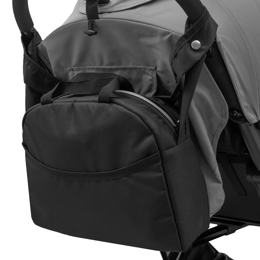 - Raznoliki načini nošenja – kratki ročaji za v roko, nastavljiv trak čez ramo ali pritrditev na voziček.
