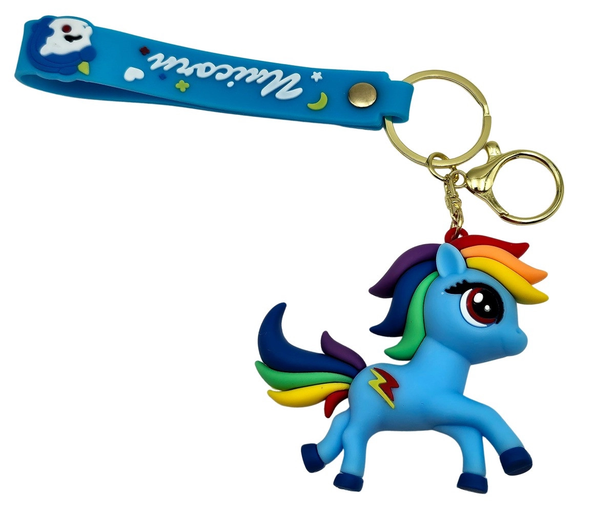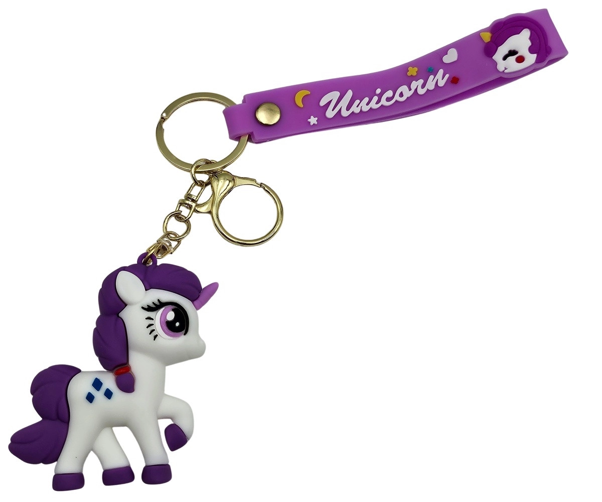 Ta obesek s motivom samoroga je popoln kot okras za ključe, aktovko ali torbico. Zahvaljujoč prožnemu silikonskemu materialu je prijeten na dotik, lahek in odporen na vsakodnevno uporabo. Kovinski obroček in karabin zagotavljata hitro in varno pripenjanje.