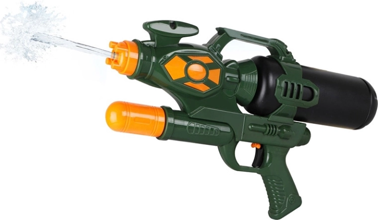 Uživajte v poletju na polno s to trendovsko vojaško vodno pištolo. Velik rezervoar s prostornino 670 ml nudi dovolj “municije” za daljše vodne bitke, priročne dimenzije 42 × 21 cm pa olajšajo oprijem tudi mlajšim otrokom. Odlična izbira za vrt, ob bazenu ali na plaži.