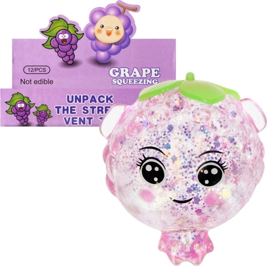 Uživajte v sprostitvi in zabavi s tem ljubkim grozdnim squishyjem. Prosojno telo z bleščicami in teksturirano površino prijetno proži, zato je odlično za stiskanje, gnetenje in urjenje fine motorike. Vsak kos je zasnovan tako, da prinese čutno stimulacijo, umiritev in veselje ob dotiku.
