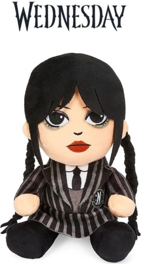 Ljubka in hkrati skrivnostna plišasta punčka Wednesday v velikosti 20 cm bo razveselila oboževalce družine Addams in zbiratelje. Izdelana je iz mehkega pliša z vezenimi detajli, ima značilno črno obleko, temne kite in ikoničen resen izraz – popolno utelešenje goth sloga lika.