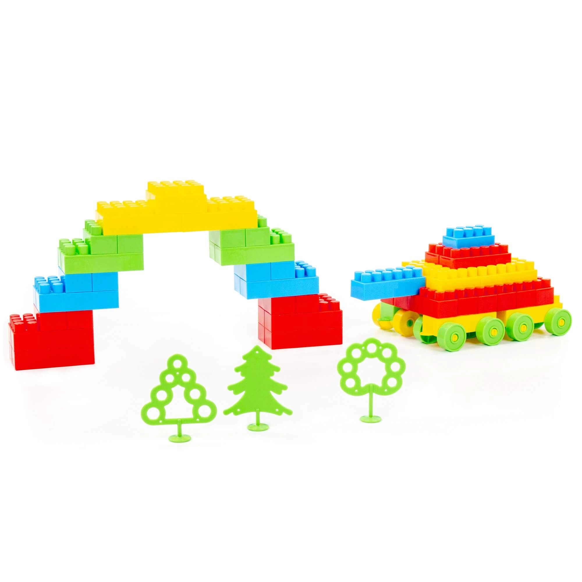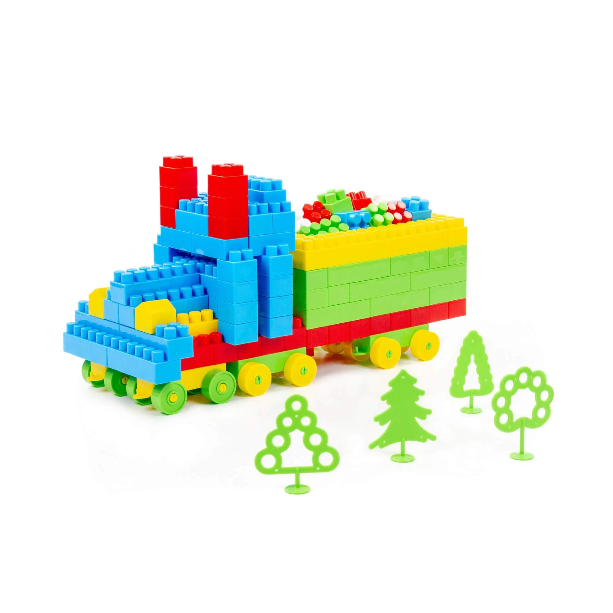 Zahvaljujoč posebnim delom s kolesi bodo otroci zlahka ustvarili vozni tovornjak s prikolico in prizor okrasili z zelenimi drevesci. Odlično za ustvarjalno igro prevoza.