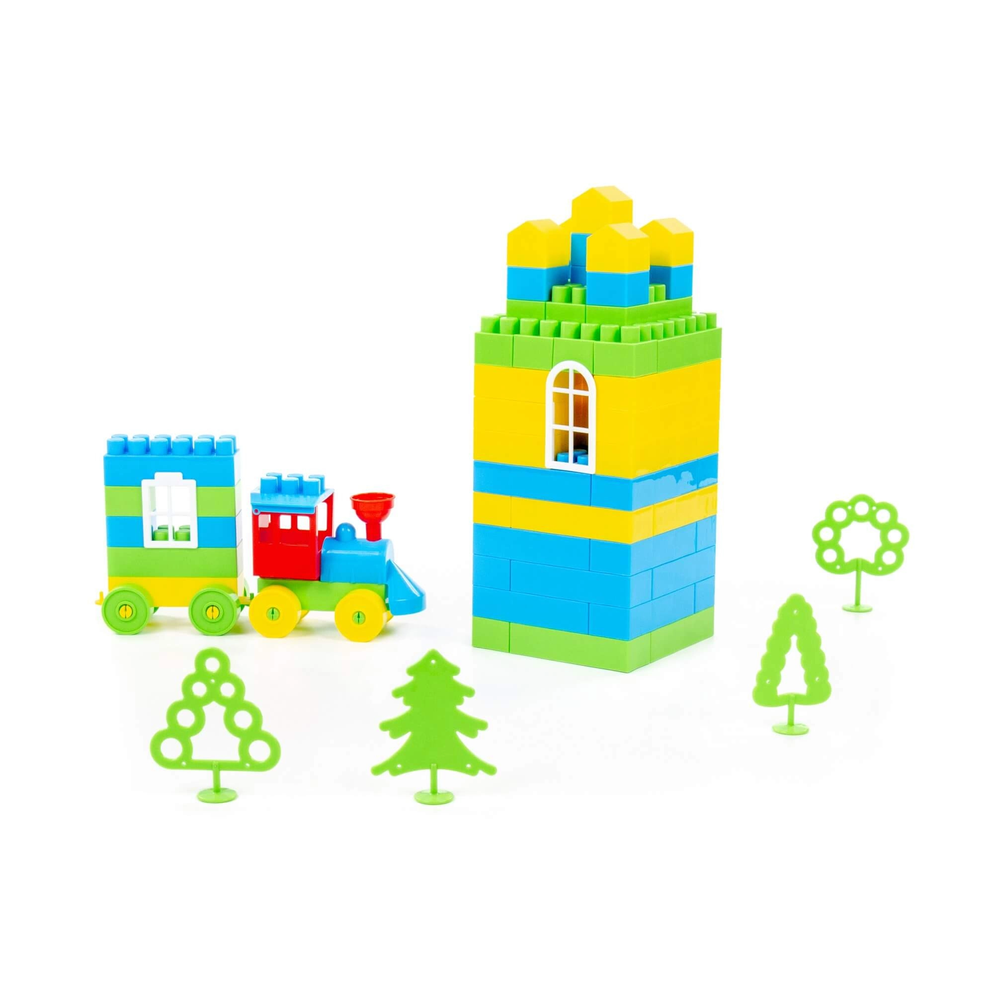 Zgradite impresiven stolp in majhen vlakec z vagonom. Zeleni dodatki pomagajo ustvarjati lastne zgodbe in okolja.