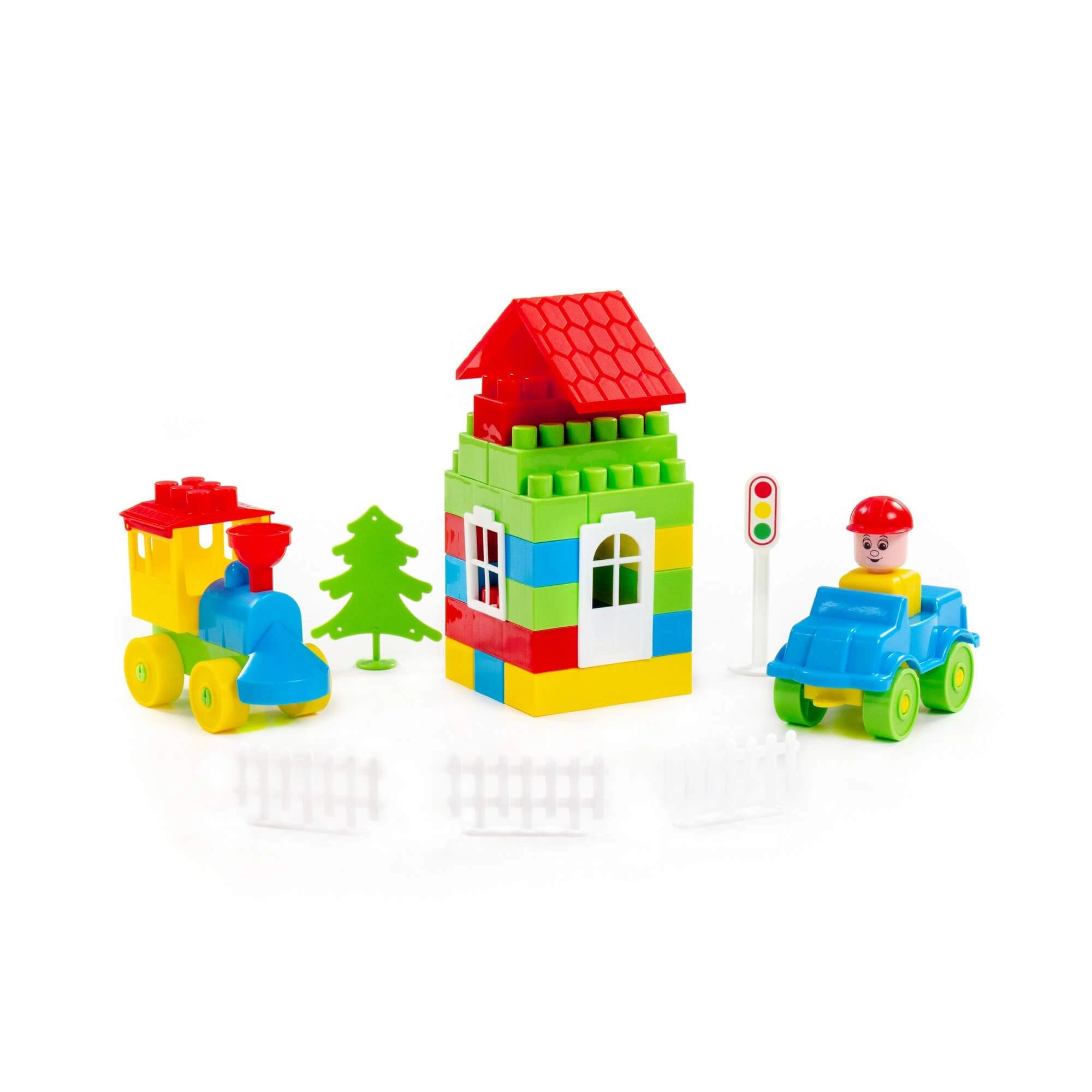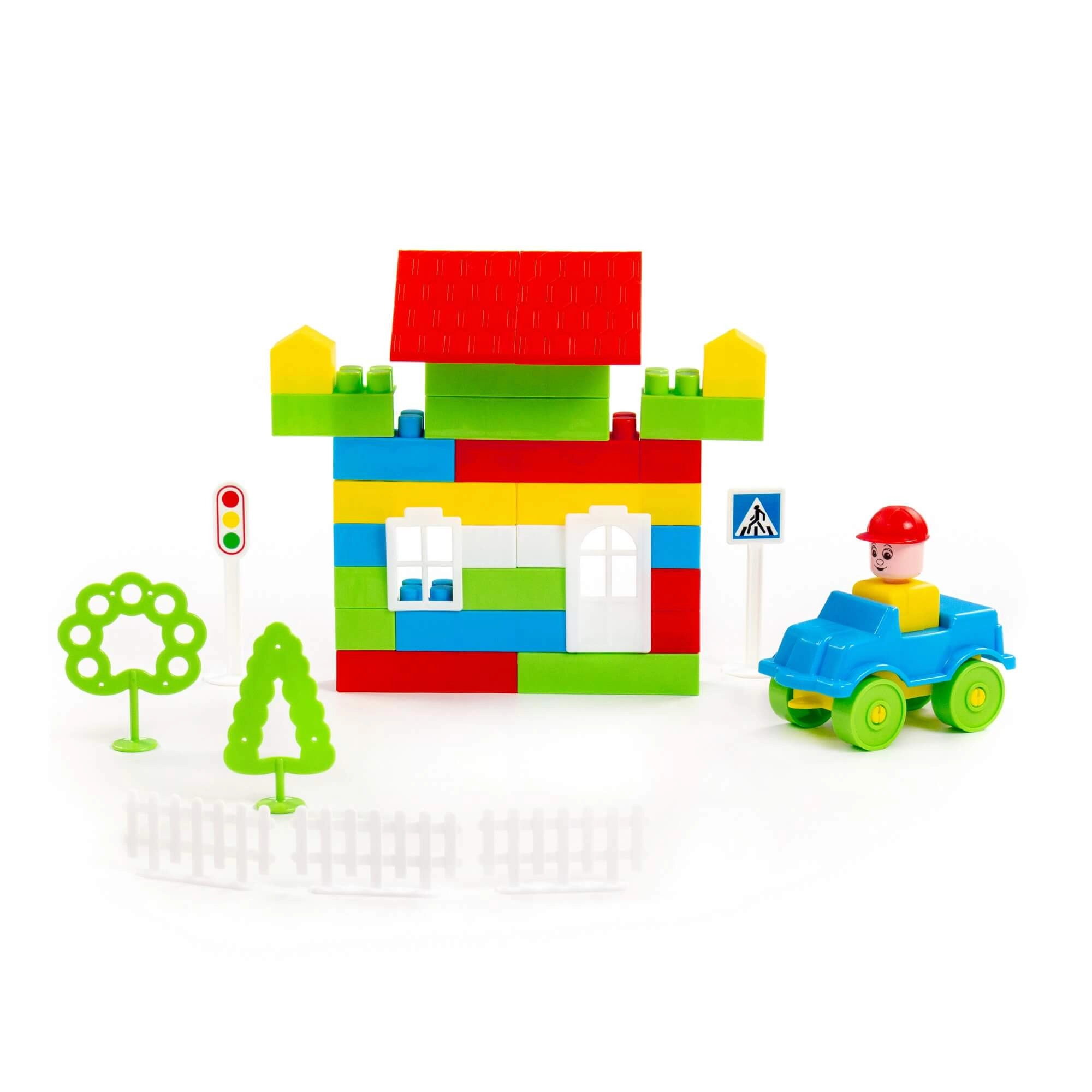 Bogato število delov omogoča otrokom graditi hiške, vozila in cele prizore ter vsak dan razvijati domišljijo.