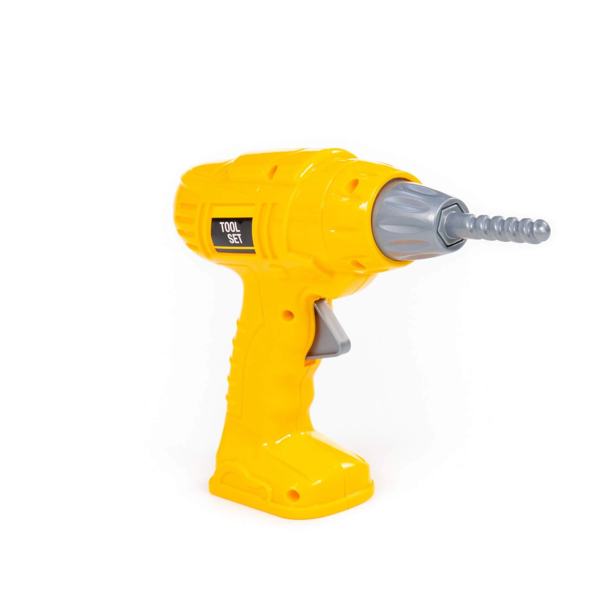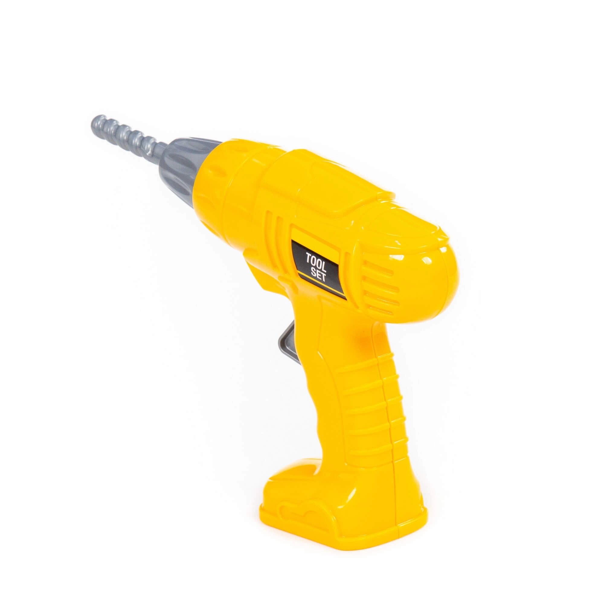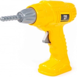 Vrtalnik spodbuja kreativno igro, učenje in koordinacijo oko–roka. Izrazita barvna izvedba in napis “TOOL SET” spodbujata domišljijo ter uvajata otroke v svet gradnje in popravil.