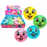 Zabavna poskakujoča žogica z motivom Zajčka, premera 6,5 cm, prinaša ure igre in gibanja za otroke od 3 let. Na voljo v različnih barvnih različicah, idealna za vrt, igrišče in dom. Cena za 1 kos.