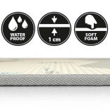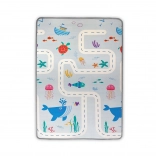 Material XPE je brez formamida, ftalatov, PVC in BPA, je antialergen in enostaven za vzdrževanje – dovolj je obris z vlažno krpo. Podloga je lahka, enostavno se zvije in pospravi, idealna tudi za na pot ali uporabo na prostem na ravnih površinah. Izpolnjuje evropske varnostne standarde EN 71.