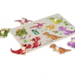 Ta kakovostna lesena vstavljanka z dinozavri otrokom prinaša veselje do učenja in igre. Zaradi trpežne izdelave in prijetnega materiala je varna in obstojna, primerna za vsakodnevno igro. Otroci vadijo koordinacijo oko–roka ter se učijo prepoznavati oblike in barve.