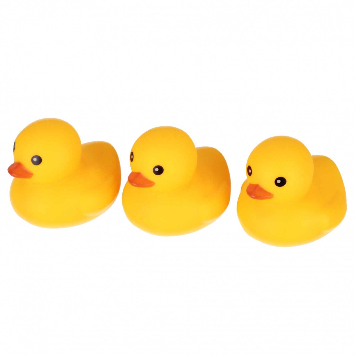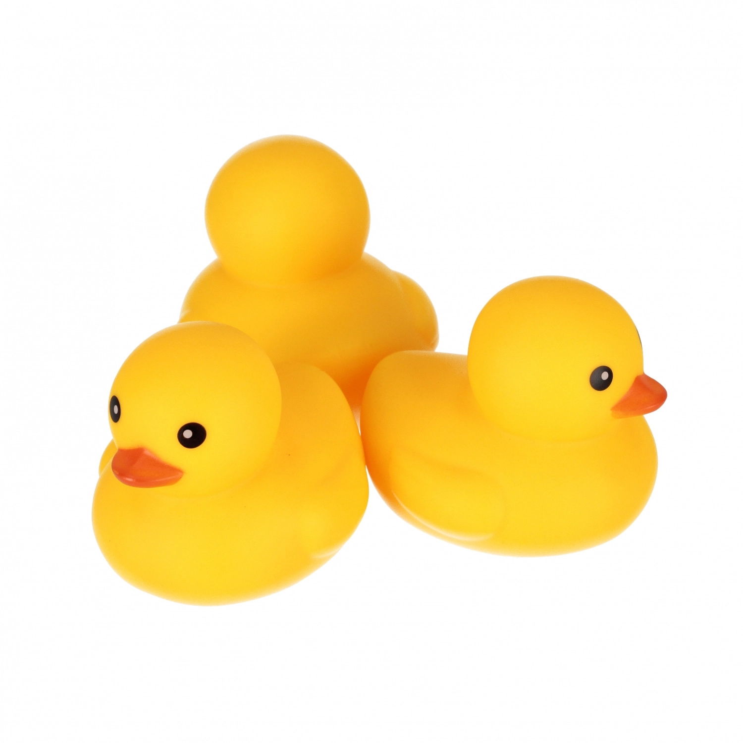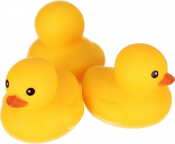 Vsaka račkica ima izrazito rumeno barvo in oranžen kljunček, zato jih otroci v vodi dobro opazijo. Komplet vsebuje 3 kose, tako da se lahko hkrati igra več otrok ali pa se račke izmenjujejo.