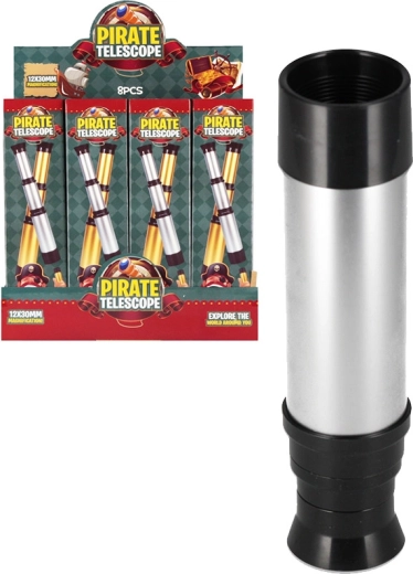 Otroški piratski teleskop spodbuja domišljijo, igro vlog in radovednost. Zaradi kompaktnih mer 32 × 4 × 4 cm se udobno prilega otroški roki in je primeren za potovanja, vrt ali otroško sobo. Odličen za male pirate, ki želijo raziskovati okolico in si izmišljevati pustolovske zgodbe.