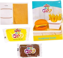 Modelirna masa Play‑Doh Air Clay naravno otrdi na zraku, zato morajo otroci le ustvarjati in pustiti izdelke, da se posušijo. Brez pečice in brez vročih orodij.