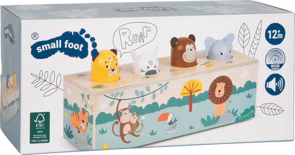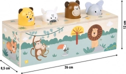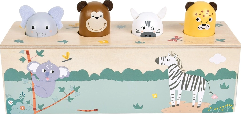 Ta trpežna lesena glasbena skrinjica s štirimi živalmi je odličen spremljevalec za prve raziskovalne korake. Otroci ob pritisku na žival opazujejo vesel dvig glavic in slišijo resnične zvoke, s čimer na igriv način urijo prstno motoriko in krepijo logično razmišljanje.