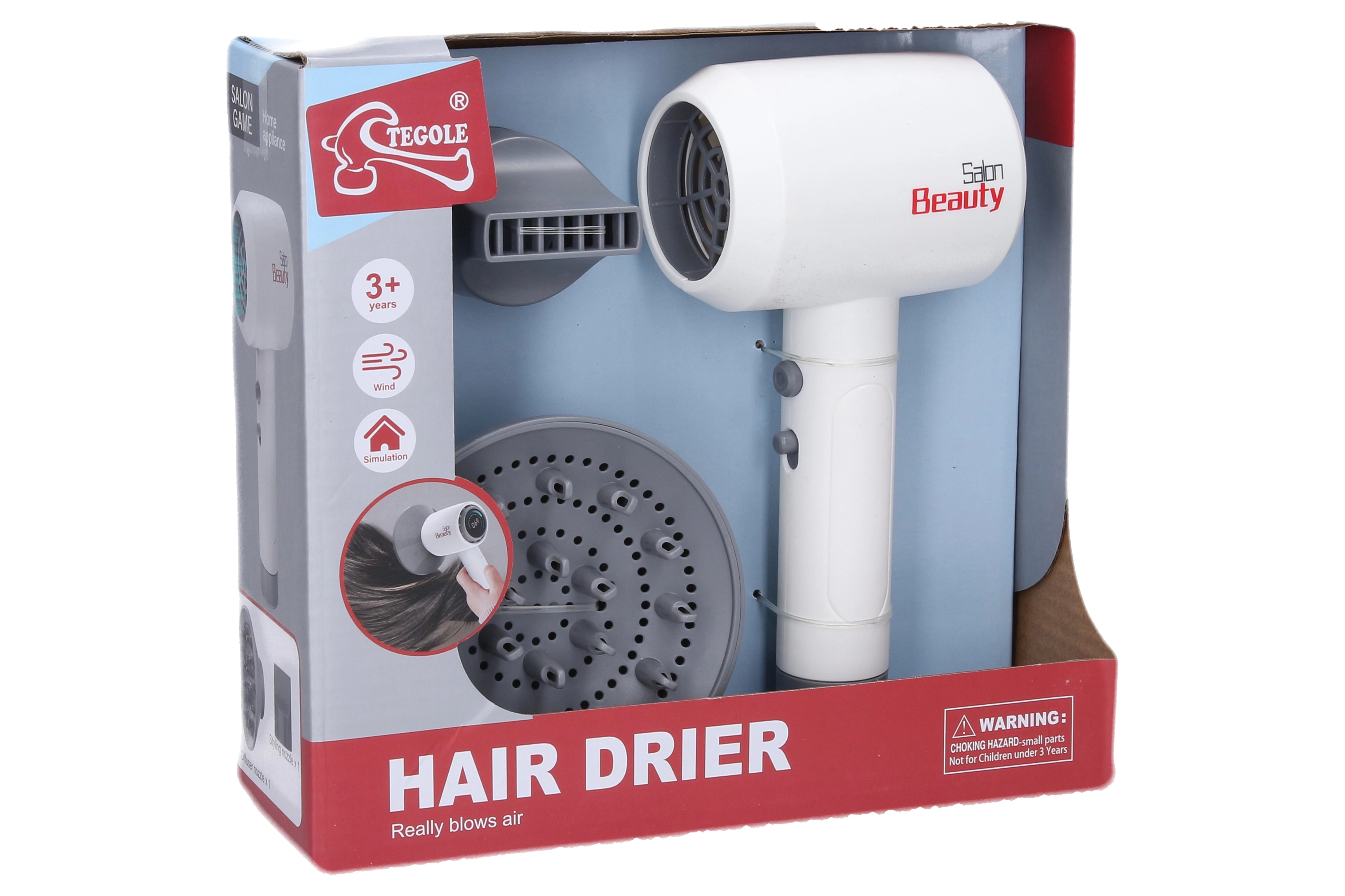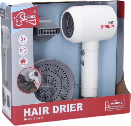 Ta otroški sušilnik je odličen dodatek k otroškim frizerskim setom. Kompaktna velikost 18 cm se udobno prilega majhnim rokam, preprosto upravljanje pa zagotavlja enostavno uporabo. Zahvaljujoč funkciji pihanja in dvema nastavkoma lahko otroci preizkusijo različne tehnike oblikovanja.