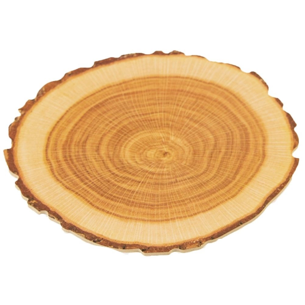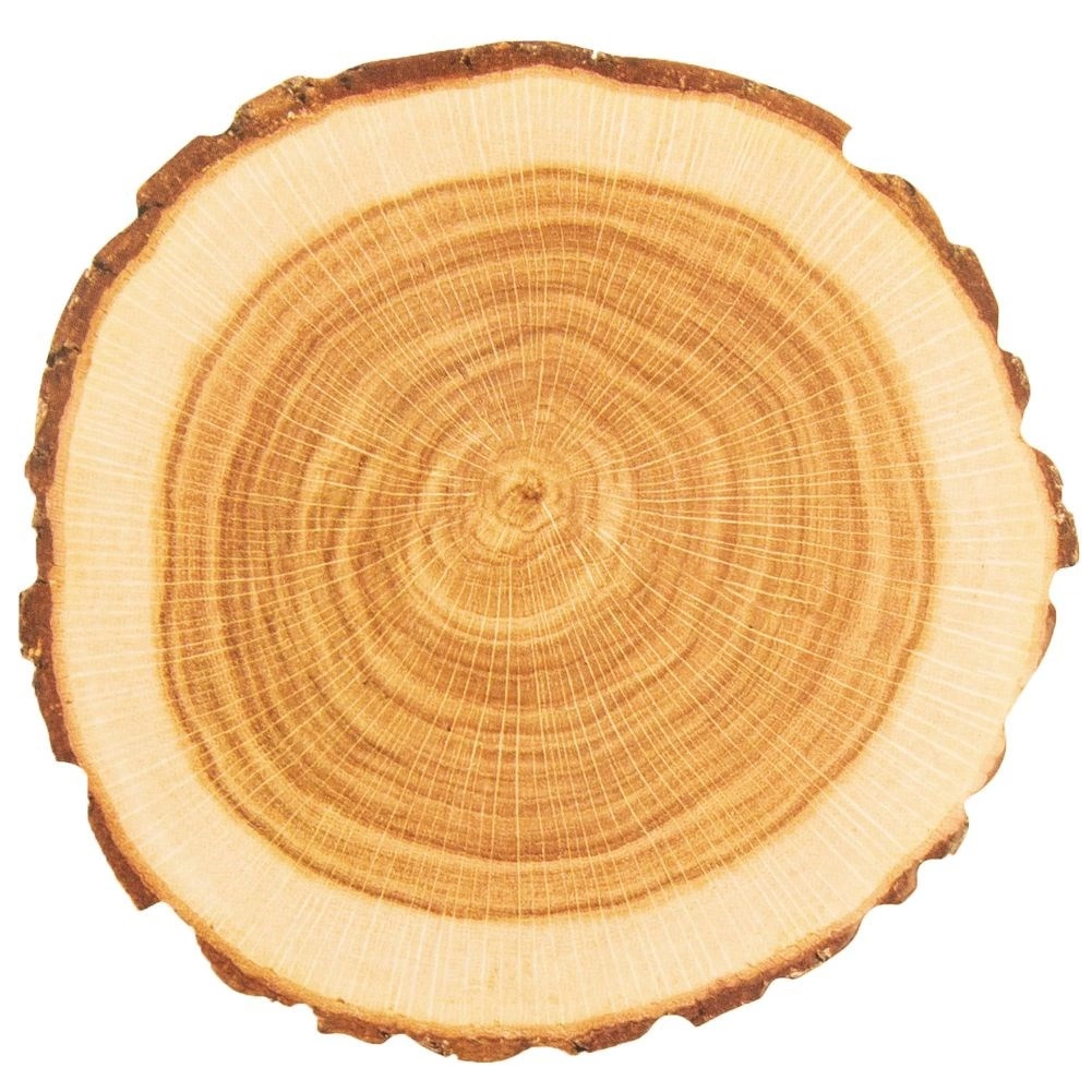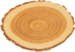 Realistični letni obroči in rustikalni rob vnesejo v pogrinjek prijetno, naravno vzdušje brez uporabe pravega lesa.