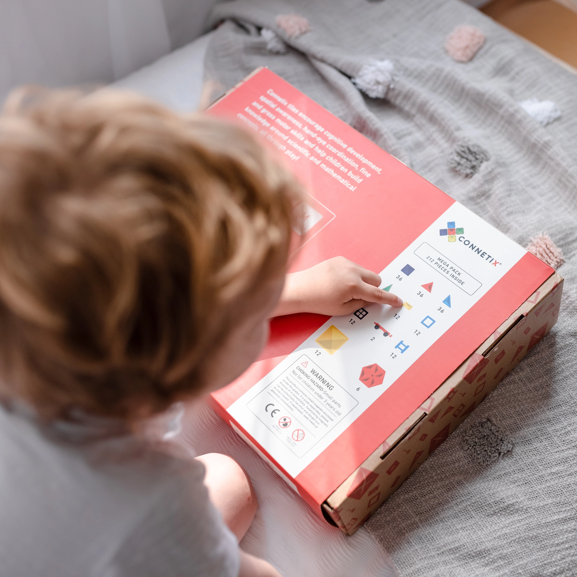 V paketu najdete pestro paleto oblik, vključno z velikimi kvadrati in šesterokotniki, okni, vrati, ograjami in podvozji s kolesi za izdelavo vozil. Otroci se naravno učijo o simetriji, 2D/3D likih, ravnotežju in stabilnosti konstrukcij, razvijajo koordinacijo oko–roka in logično razmišljanje.