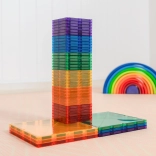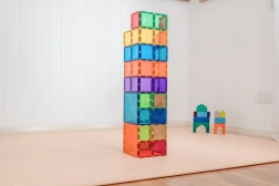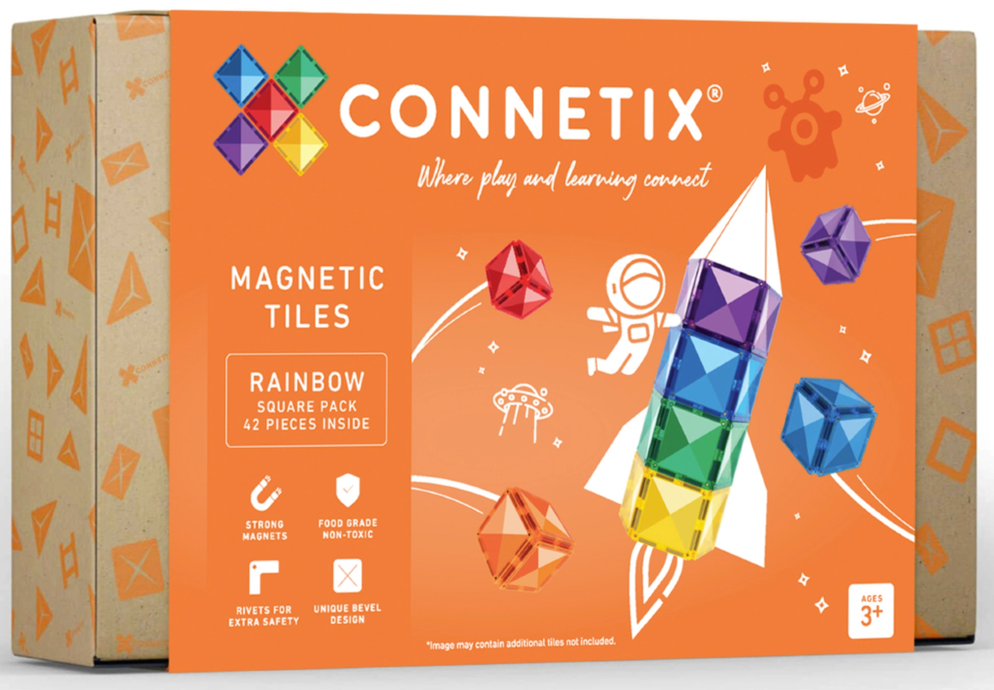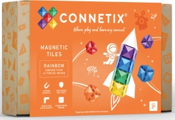 CONNETIX je nagrajena avstralska znamka, ki navdihuje otroke k odkrivanju znanosti in ustvarjalnosti skozi igro. Komplet 42 kvadratnih kosov v barvah mavrice je odlično izhodišče za gradnjo stolpov, gradov, mostov in raket. Neodimski magneti trdno držijo z vseh strani, prosojni paneli pa omogočajo opazovanje povezav in svetlobnih učinkov.