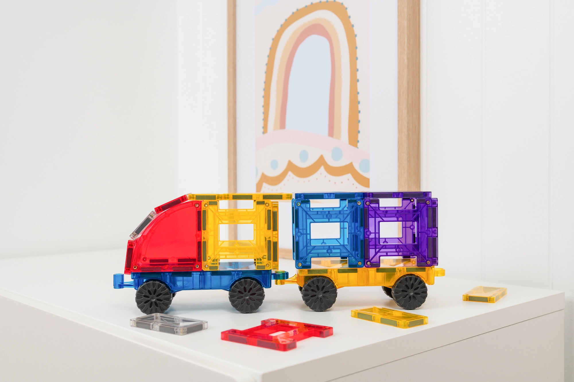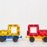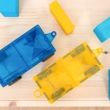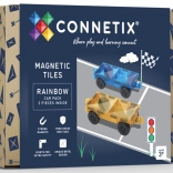 Set CONNETIX Rainbow Car Pack prinaša dve prozorni mobilni osnovi v modri in rumeni barvi z gladko vrtečimi se kolesi. Z lahkoto ju povežete z drugimi magnetnimi deli CONNETIX in v hipu ustvarite lastne avtomobile, tovornjake ali vlakce. Močni neodimski magneti stabilno držijo z vseh strani, značilen »klik« ob spajanju delov pa doda gradnji dodatno veselje.