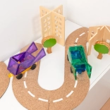 Dve prozorni podvozji z gladkim tekom koles in očesi za preprosto povezovanje. Zgradite avtomobile, vlačilce ali vlakce in se podajte v igro na poti.