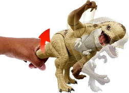 Odkrijte mogočnega plenilca Distortus Rex z avtentičnimi filmskimi podrobnostmi, mišičasto silhueto in realistično teksturo lusk. S pritiskom gumba sprožite rjovenje in grizenje, z obračanjem repa pa izvedete uničujoč udarec s taco. Figura je odlična za akcijsko igro in razstavljanje.