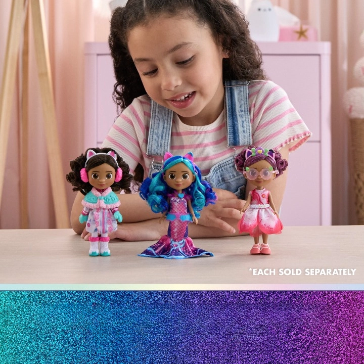 Ta licencirana punčka, navdihnjena s priljubljeno serijo Mačja hišica GABBY (Gabby's Dollhouse) znamke Spin Master, otrokom prinaša ure kreativne igre. Gabby ima rjave kodraste lase, rjave oči in trendi opravo – dolgo sladkorno jaknico in bele pajkice, ki jih lahko kombinirate z zimskimi dodatki v pakiranju.