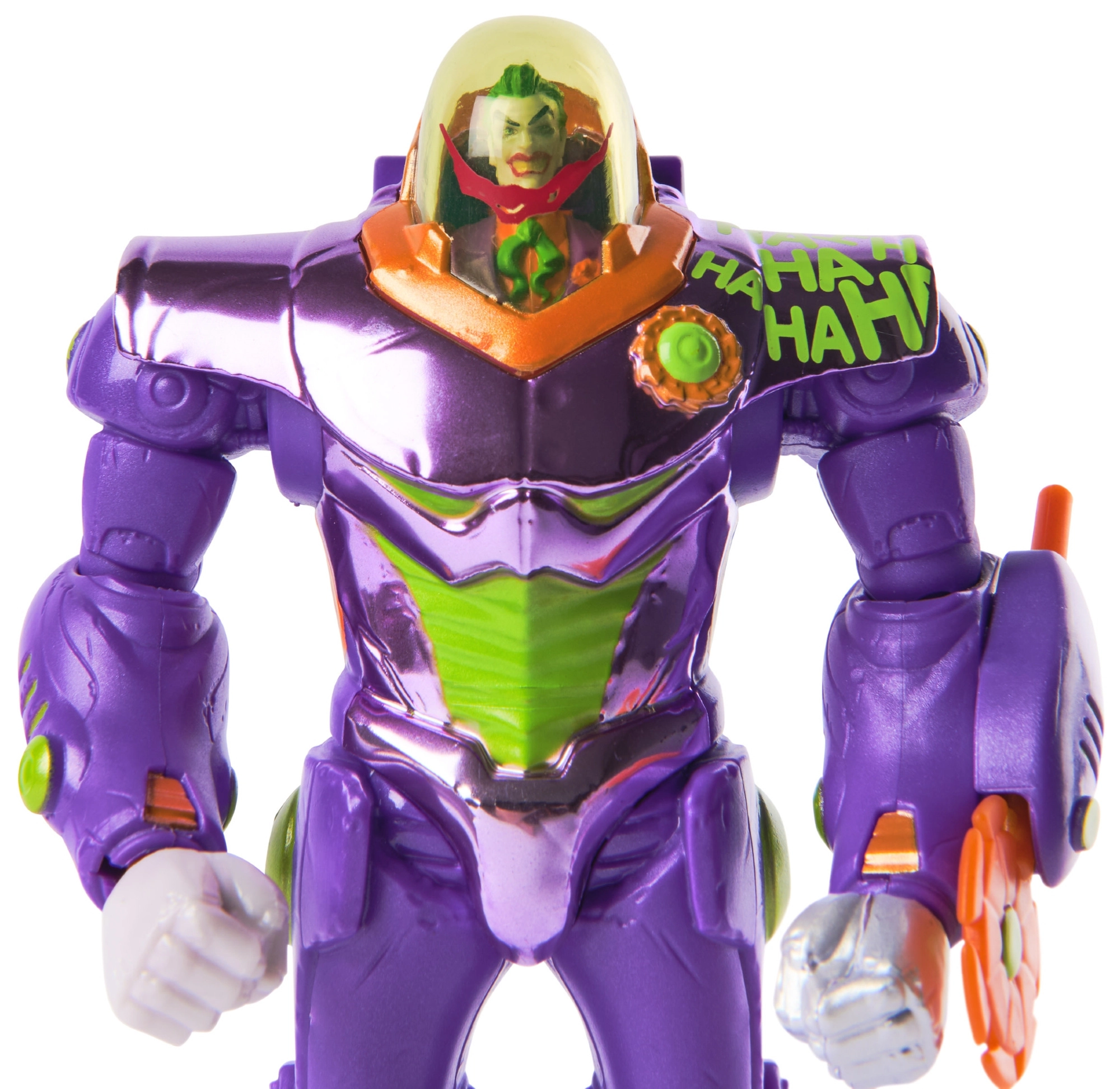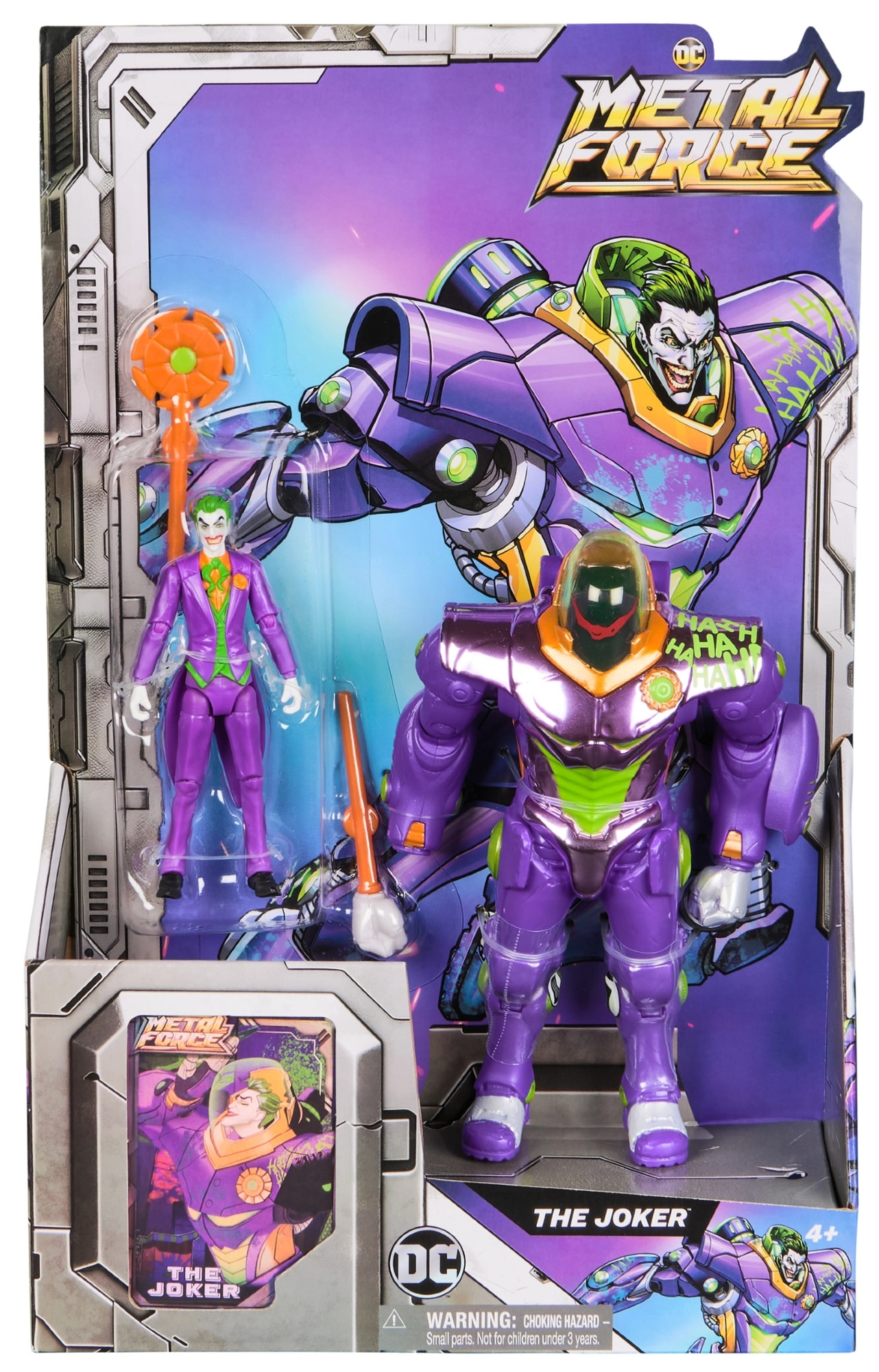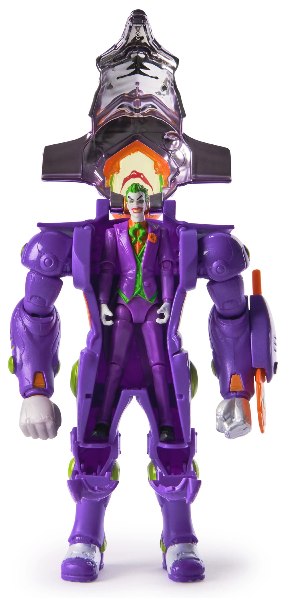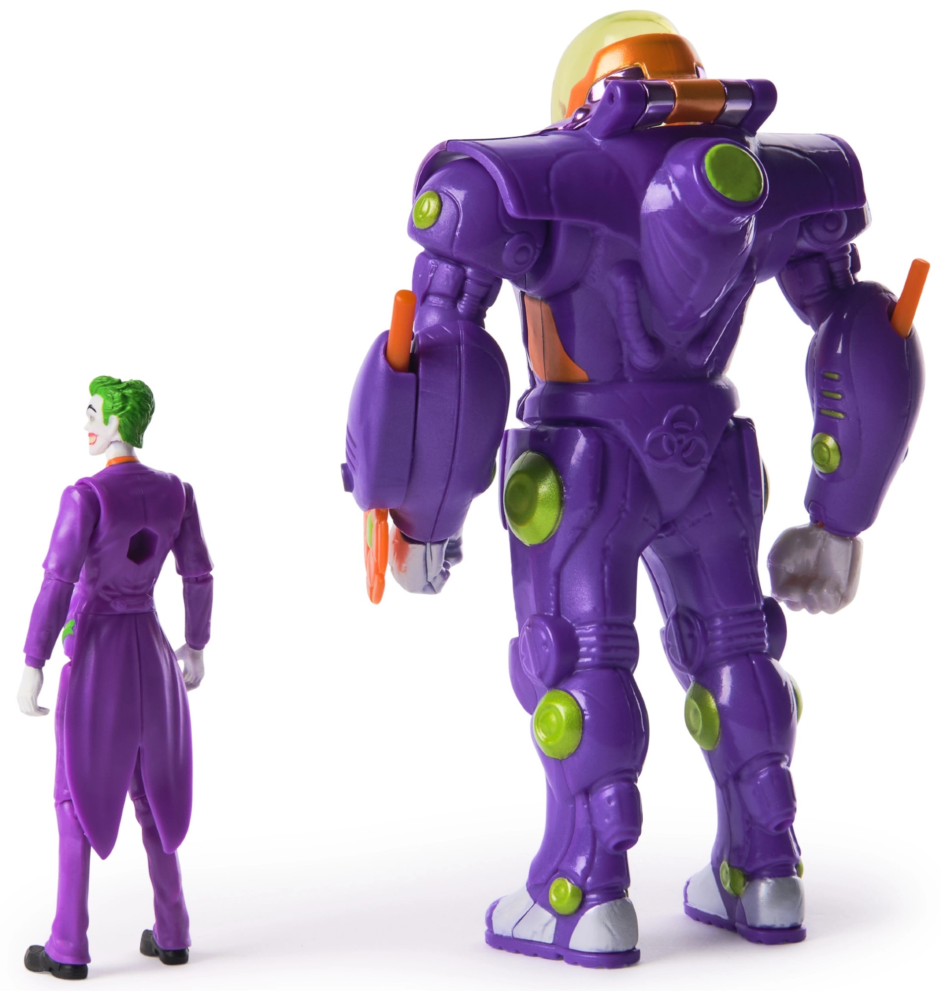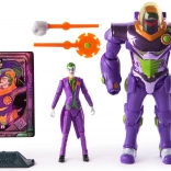 Legendarni nasprotnik Batmana prihaja v podrobni izvedbi: figurica THE JOKER v značilnem vijolično‑zelenem slogu ter mogočen oklep z odpiralnim kokpitom. Zahvaljujoč večtočkovni artikulaciji je idealen za akcijske prizore, razstavljanje na polici in zbirateljske diorame.