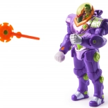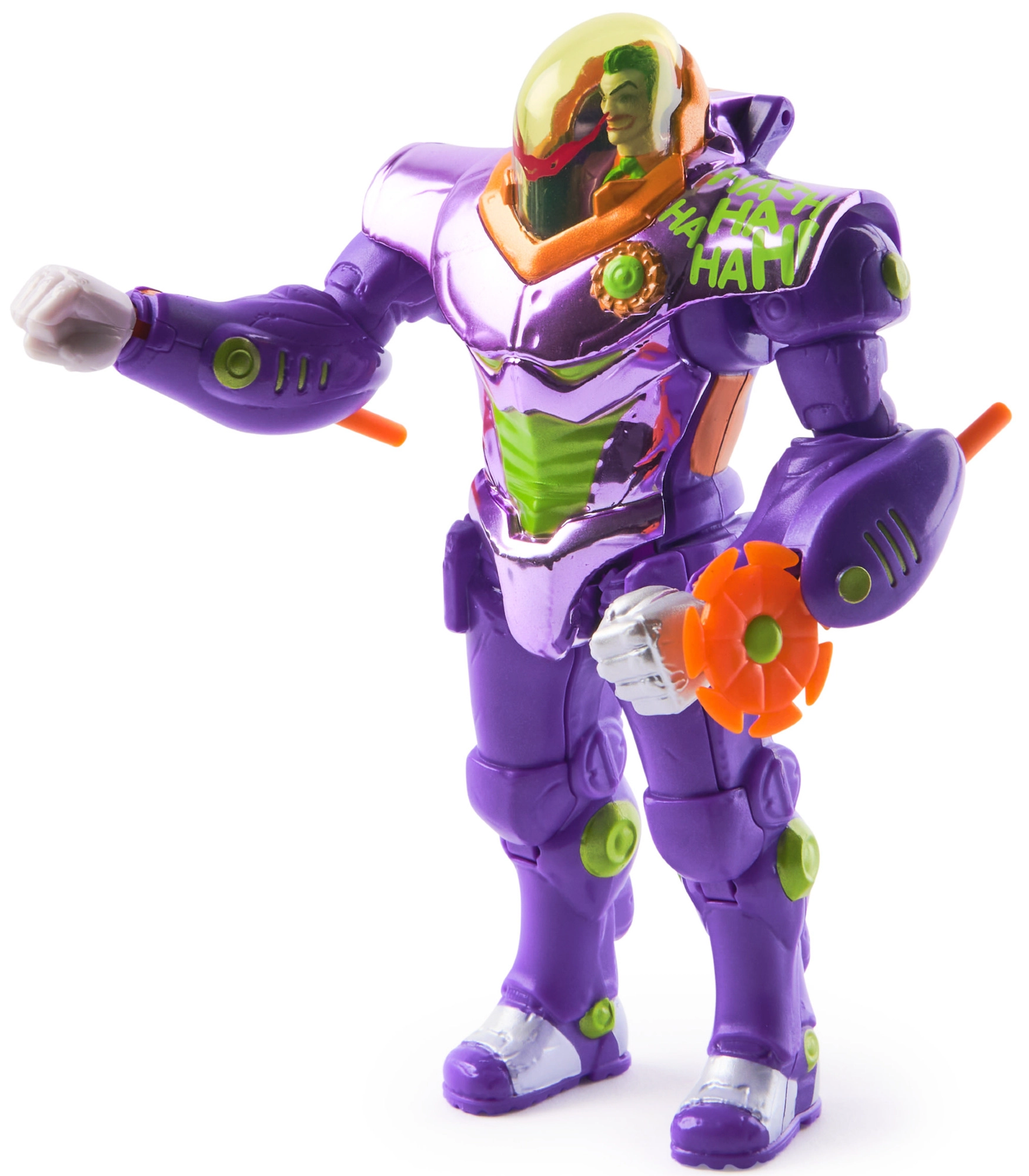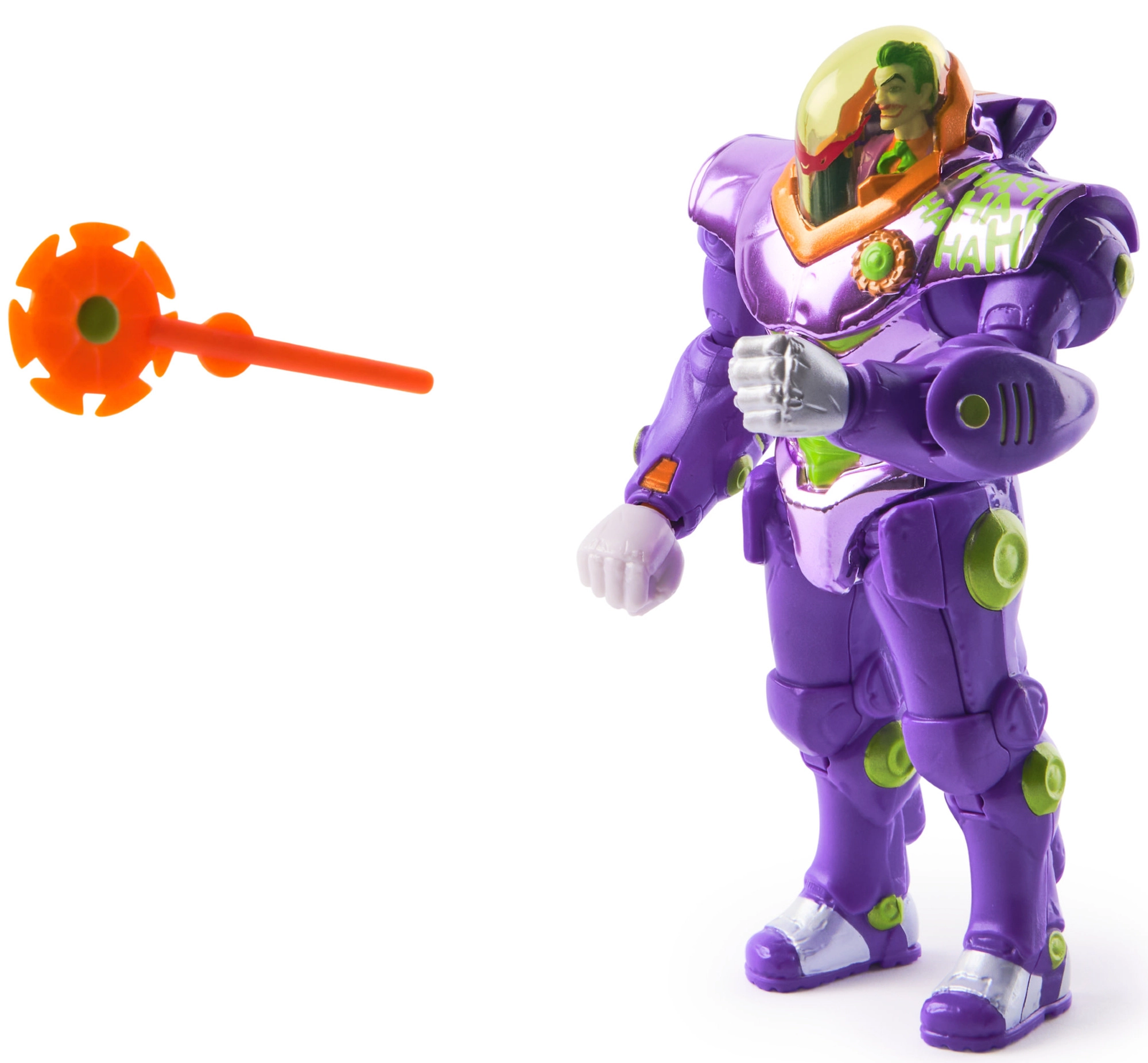 Velik vijoličen oklep s prozornim vizirjem sprejme 10 cm figurico THE JOKER. Zgornji del se odpira in omogoča hitro namestitev figurice in pripravljenost na akcijo.