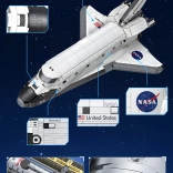 Z premičnimi deli lahko zlahka poustvarite slavne trenutke osvajanja vesolja – od odpiranja tovornega prostora do upravljanja z »roko« in izvleka podvozja. Trajni tiskani potiski (logotip NASA, zastava ZDA, paneli) zagotavljajo premijski videz brez nalepk, model pa odlično izstopa tako na polici kot na stojalu.
