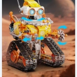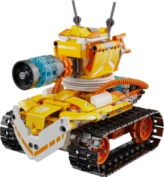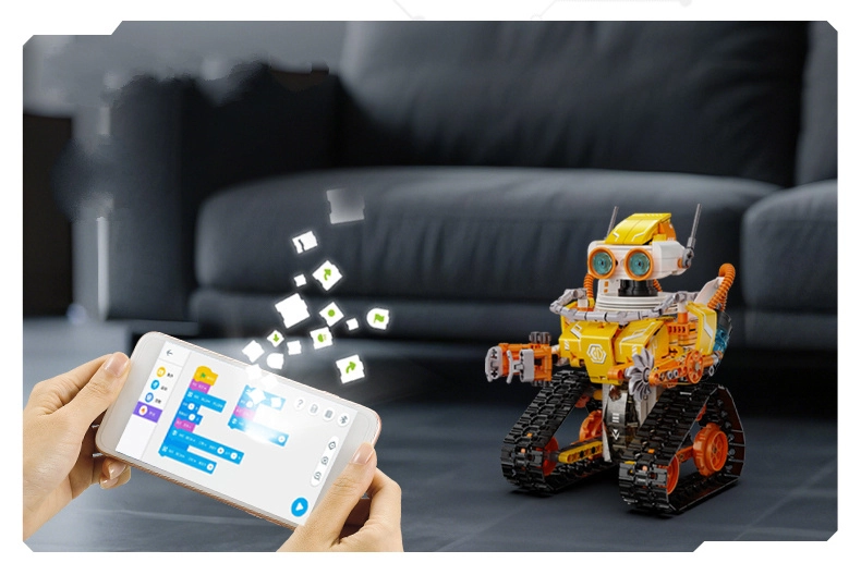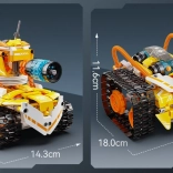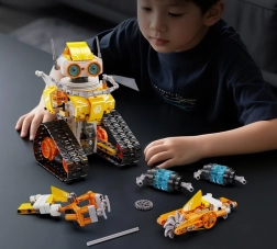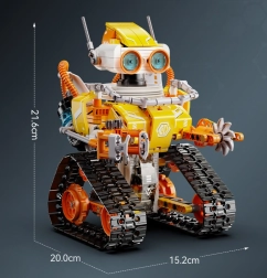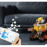 Upravljanje je intuitivno – izberite RC upravljalnik 2,4 GHz z dosegom približno 25 m ali Bluetooth aplikacijo (Android/iOS) z načini: daljinsko upravljanje, programiranje v Scratchu, giroskopsko vodenje in risanje poti. Ta STEM stavebnica spodbuja fino motoriko, potrpežljivost in timsko sodelovanje pri sestavljanju.