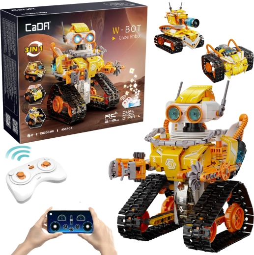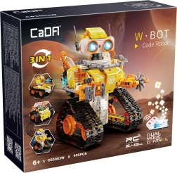 Stavebnica CaDA W.Bot ponuja pametno zabavo za otroke in odrasle. Modularni koncept 3v1 omogoča sestavo treh različnih modelov iz ene sete, zahvaljujoč gosenicnemu podvozju, vrtljivi glavi in funkcionalnemu orodju/rotorju 360° pa boste uživali v tekočem gibanju in realističnih akcijah. Integrirane luči dajejo modelu privlačen videz.