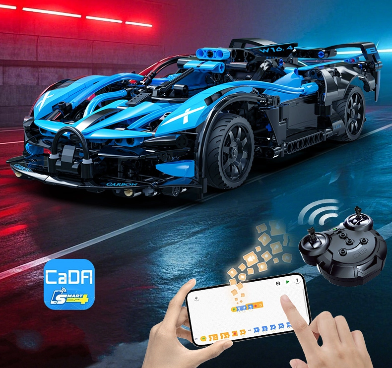 Z dvojnim upravljanjem izberete, ali boste uporabili 2,4 GHz daljinec z dosegom približno 25 m in hitrostjo do 5,5 km/h ali mobilno aplikacijo (Android/iOS) z več načini, vključno z žiroskopom in risanjem poti. Potiski namesto nalepk, aerodinamične linije in kakovostni elementi, združljivi z drugimi seti CaDA, dvignejo model in igro na višjo raven.