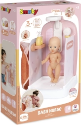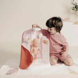 Set je zasnovan za punčke do 40 cm in ponuja odlagalna mesta za dodatke, tuš ročko in stekleničko. Kakovostna izdelava znamke SMOBY zagotavlja varno in dolgotrajno zabavo. Izdelano v Franciji in dobavljeno v darilni embalaži – idealno kot darilo za male negovalce.
