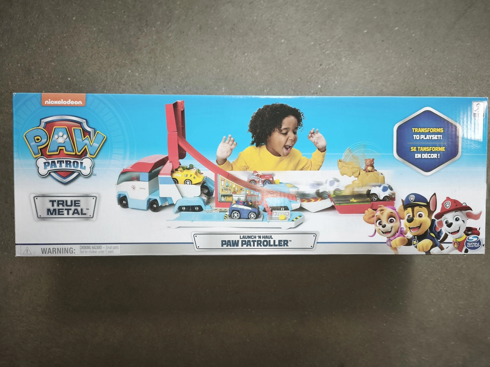 Otroški set, navdihnjen s serijo PAW PATROL znamke Spin Master, ponuja preoblikovalni 2v1 transporter v belo-modro-rdeči barvi. Prikolica se po razložitvi spremeni v velik izstreljevalnik avtomobilčkov, omogoča različne reševalne misije in sprejme do 7 kovinskih vozil True Metal (prodajajo se posebej). OUTLET – NEPOPOLN: manjka Robo-pes.