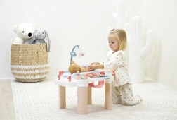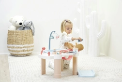 Podprite domišljijo in fino motoriko otrok z večnamenskim negovalnim centrom, ki združuje tri igralne cone – nego, hranjenje in kopanje. Zahvaljujoč stabilni konstrukciji, prijetno zaobljenim oblikam in premišljeno zasnovanim shranjevalnim prostorom se otroci zlahka vživijo v vlogo malega negovalca.