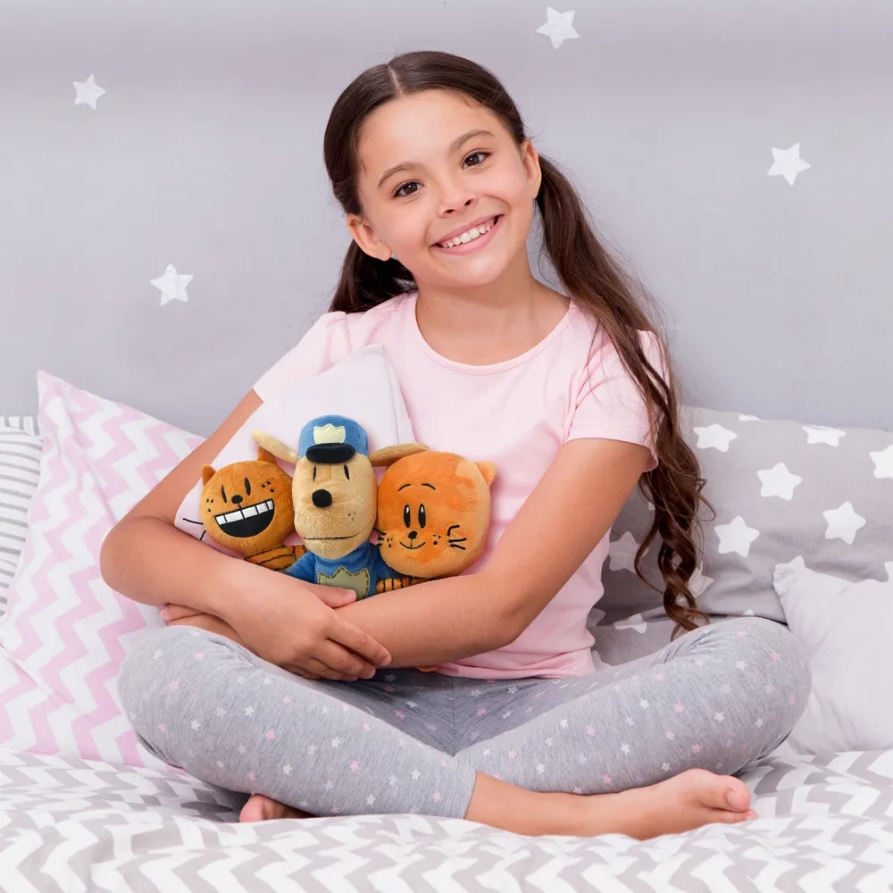 Otrokom domov prinesite junaka iz zgodb DOG MAN – veselega policista s širokim nasmehom in prikupno čepico. Plišasta igrača je izdelana iz nežnega in mehkega materiala, ki vabi k crkljanju, zaradi kompaktne velikosti pa lepo sede v otroško dlan in nahrbtnik.