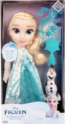 Vstopite v čarobni svet s punčko Pevajoča prijateljica Elsa – pogumno kraljico iz FROZEN, ki navdihuje k pogumu in sledenju sanjam. Punčka ima čudovite bleščeče, brokatne oči in dolge lase, primerne za česanje in ustvarjanje pričesk.