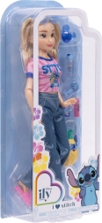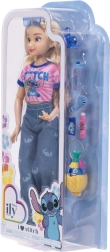 Odkrijte modno punčko Disney ILY 4Ever, navdihnjeno z priljubljenim junakom STITCH. Punčka z dolgimi blond lasmi nosi rožnato majico z motivom STITCH, modre kavbojke s potiskom in rožnate sandale. Zglobna konstrukcija z 13 točkami artikulacije omogoča realistično poziranje in spodbuja razvoj otroške domišljije.