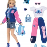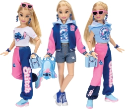 Odkrijte svet mode z lutko Disney ILY 4Ever, navdihnjeno z STITCH. V pakiranju najdete športni outfit z varsity jakno, jeans kratkimi hlačami in platform supergami ter dodatni sproščeni set z jogger hlačami in topom. Členjeni udi omogočajo naravne poze ter navdihujejo zgodbe in neskončno modno zabavo.