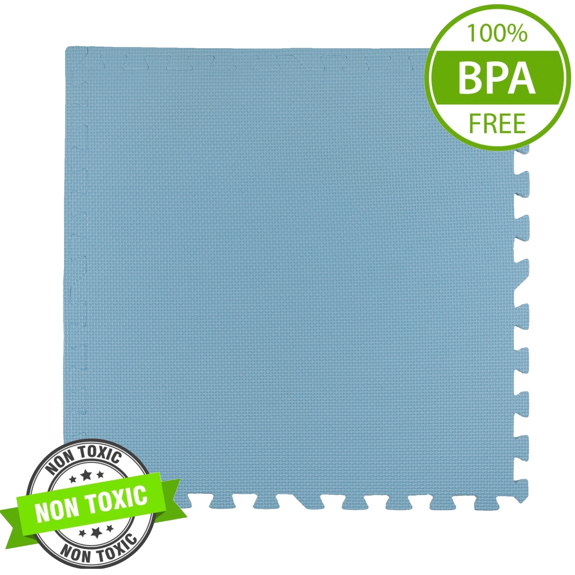 Varnost in udobje za dojenčke od prvih dni: podloga iz prožne EVA pene je mehka, blaži padce in izolira od hladnih tal. Zahvaljujoč protizdrsni površini podpira varno plazenje, plezanje in prve korake. Nevsiljiva, svetlo modra barva se lepo poda k notranji opremi.